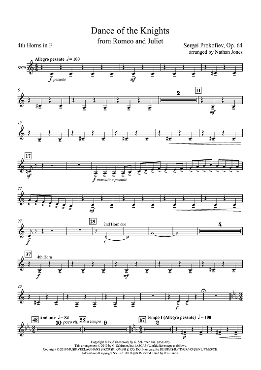 Digital Sheet Music for Dance of the Knights from Romeo and Juliet - F Horn 4 by Sergei Prokofiev, Nathan Jones scored for Concert Band; id:502678