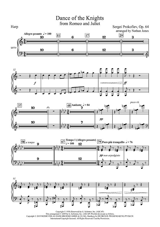 Digital Sheet Music for Dance of the Knights from Romeo and Juliet - Harp by Sergei Prokofiev, Nathan Jones scored for Concert Band; id:502686