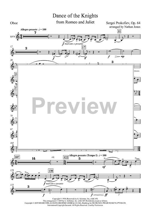 Digital Sheet Music for Dance of the Knights from Romeo and Juliet - Oboe by Sergei Prokofiev, Nathan Jones scored for Concert Band; id:502658