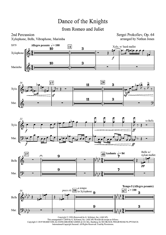 Digital Sheet Music for Dance of the Knights from Romeo and Juliet - Percussion 2 by Sergei Prokofiev, Nathan Jones scored for Concert Band; id:502688