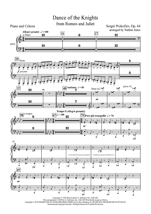 Digital Sheet Music for Dance of the Knights from Romeo and Juliet - Piano by Sergei Prokofiev, Nathan Jones scored for Concert Band; id:502685