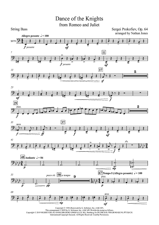 Digital Sheet Music for Dance of the Knights from Romeo and Juliet - String Bass by Sergei Prokofiev, Nathan Jones scored for Concert Band; id:502684