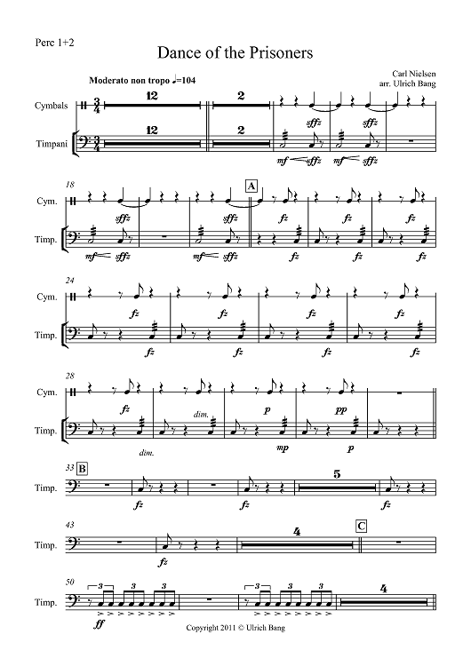 Digital Sheet Music for Dance of the Prisoners - Percussion 1 & 2 by , Carl Nielsen, Ulrich Bang scored for Brass Ensemble; id:419752