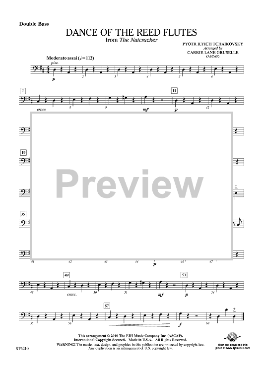 Digital Sheet Music for Dance of the Reed Flutes - Double Bass by Peter Ilyich Tchaikovsky, Carrie Lane Gruselle scored for Orchestra; id:411556
