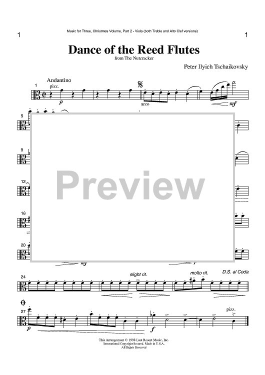 Digital Sheet Music for Dance of the Reed Flutes from The Nutcracker - Part 2 Viola by , Peter Ilyich Tchaikovsky, Daniel Kelley scored for Instrumental Trio; id:424674