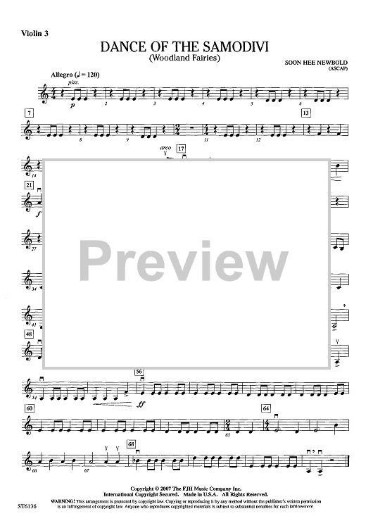 Digital Sheet Music for Dance of the Samodivi (Woodland Fairies) - Violin 3 (Viola T.C.) by Soon Hee Newbold scored for String Orchestra; id:441619