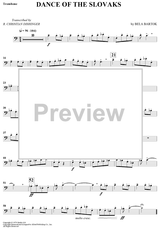 Digital Sheet Music for Dance Of The Slovaks by Bela Bartok, R. Christian Dishinger scored for Trombone/Piano; id:437426