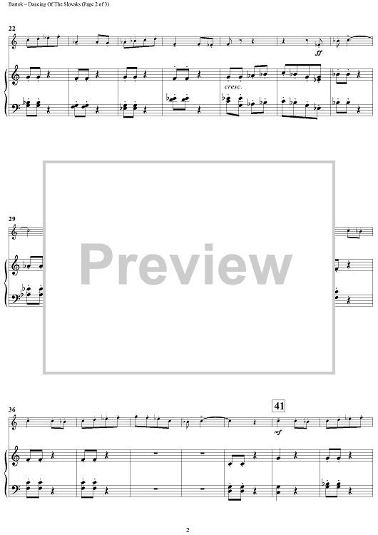 "Dance Of The Slovaks" Sheet Music by Bela Bartok