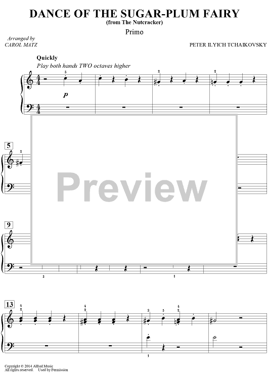 Digital Sheet Music for Dance of the Sugar-Plum Fairy (from The Nutcracker) by Carol Matz, Peter Ilyich Tchaikovsky scored for 1 Piano, 4 Hands; id:454168