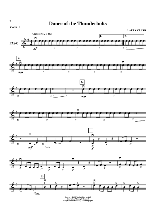 "Dance Of The Thunderbolts - Violin 2" Sheet Music by Larry Clark