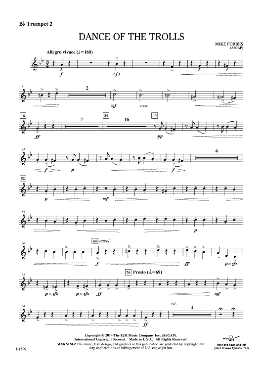 "Dance of the Trolls - Bb Trumpet 2" Sheet Music by Mike Forbes