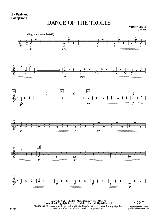 "Dance of the Trolls - Eb Baritone Sax" Sheet Music by Mike Forbes