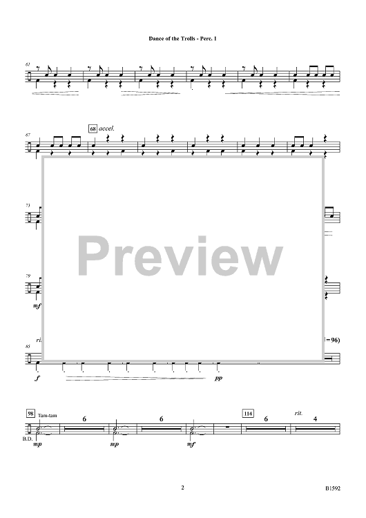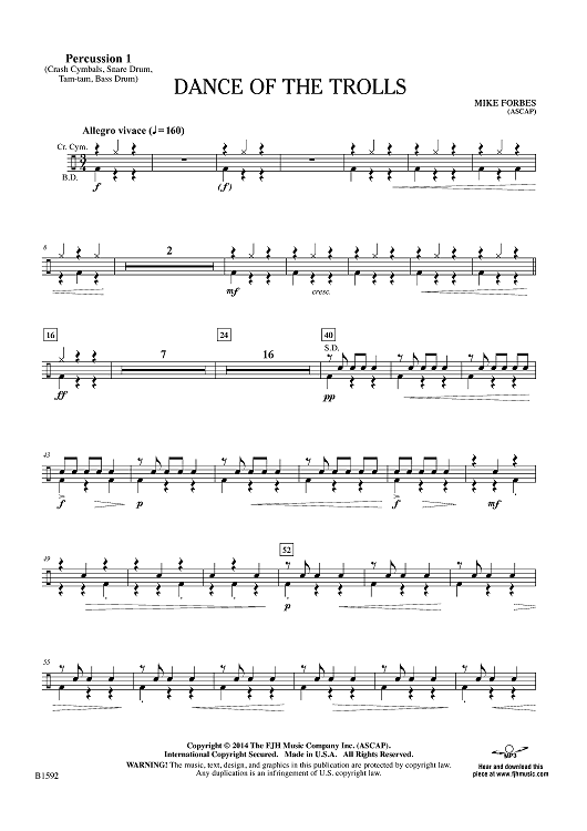 Digital Sheet Music for Dance of the Trolls - Percussion 1 by Mike Forbes scored for Concert Band; id:445974