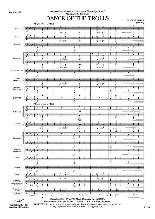 Digital Sheet Music for Dance of the Trolls - Score by Mike Forbes scored for Concert Band; id:445947