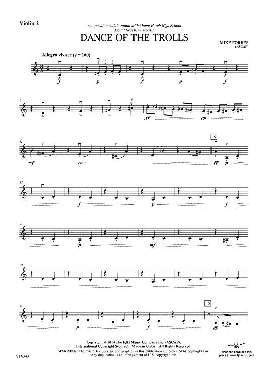 "Dance of the Trolls - Violin 2" Sheet Music by Mike Forbes