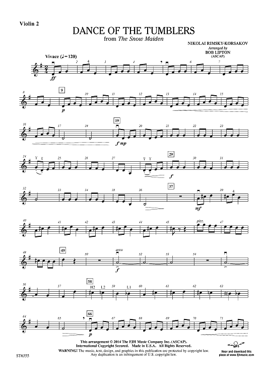 Digital Sheet Music for Dance of the Tumblers (from The Snow Maiden) - Violin 2 by Bob Lipton, Nikolai Rimsky-Korsakov scored for Orchestra; id:448240