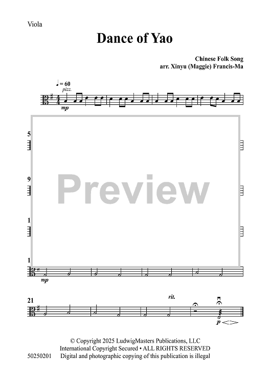 Digital Sheet Music for Dance of Yao - Viola by Traditional, Xinyu (Maggie) Francis-Ma scored for Sttring Orchestra; id:508919