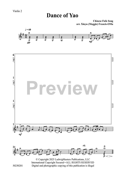 Digital Sheet Music for Dance of Yao - Violin 2 by Traditional, Xinyu (Maggie) Francis-Ma scored for Sttring Orchestra; id:508918