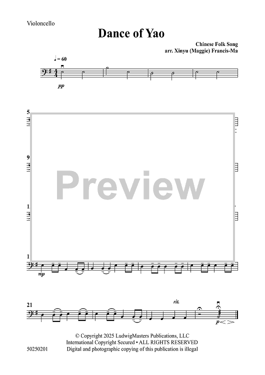 Digital Sheet Music for Dance of Yao - Violoncello by Traditional, Xinyu (Maggie) Francis-Ma scored for Sttring Orchestra; id:508920