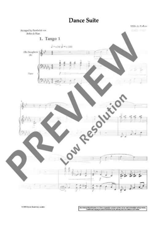 The Dance Suite for alto saxophone and piano is an arrangement of selected pieces from Mátyás Seiber's "Easy Dances", originally composed as piano pieces on the popular dance-styles of the 1920s and 30s and focusing particularly on the rhythmic characteristics of each. Seiber's life and work linked and developed many diverse musical influences, from the Hungarian tradition of Bartók and Kodály, to Schoenberg and Serial Music, to jazz, folksong, film and lighter music (rewarded by an Ivor Novello Prize for 'By The Fountains of Rome'). A late collaboration with John Dankworth produced the 'Improvisations for Jazz Band and Orchestra'.