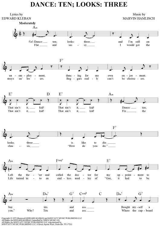 Digital Sheet Music for Dance: Ten; Looks: Three by Marvin Hamlisch, Edward Kleban scored for Lead Sheet; id:441993