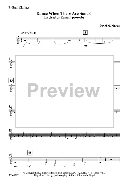"Dance When There Are Songs - Bb Bass Clarinet" Sheet Music by David M. Martin