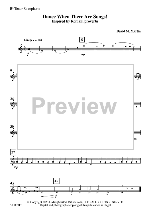 "Dance When There Are Songs - Bb Tenor Saxophone" Sheet Music by David M. Martin