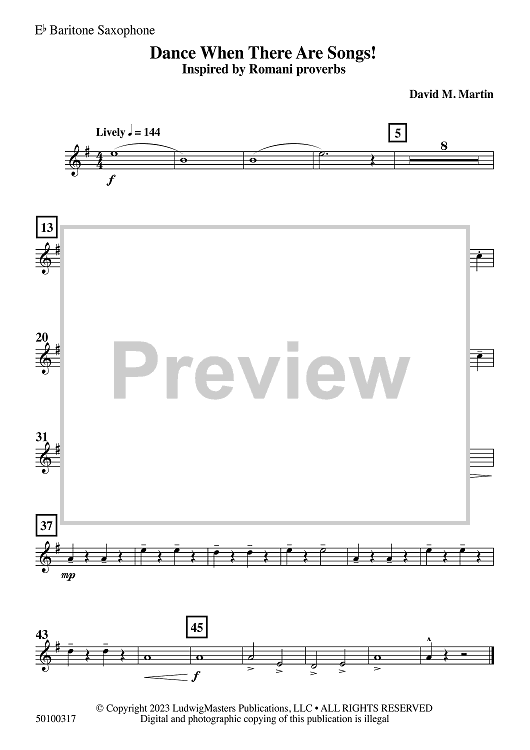 Digital Sheet Music for Dance When There Are Songs - Eb Baritone Saxophone by David M. Martin scored for Concert Band; id:509727