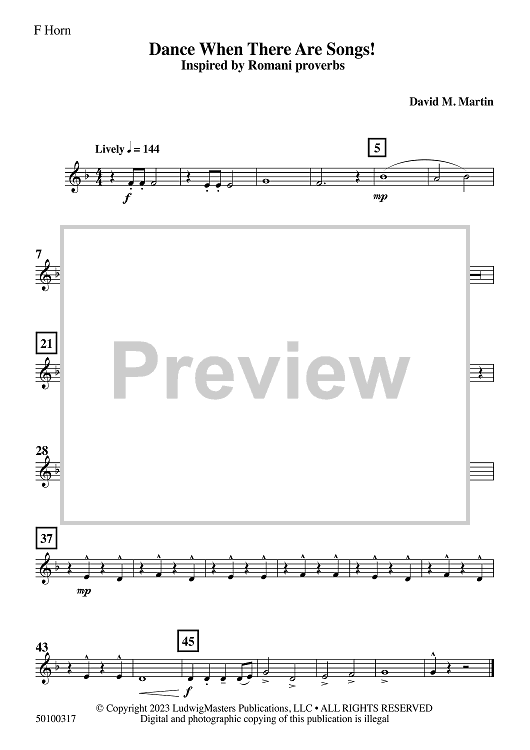"Dance When There Are Songs - F Horn" Sheet Music by David M. Martin