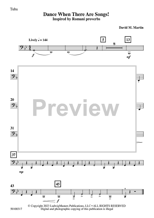 "Dance When There Are Songs - Tuba" Sheet Music by David M. Martin