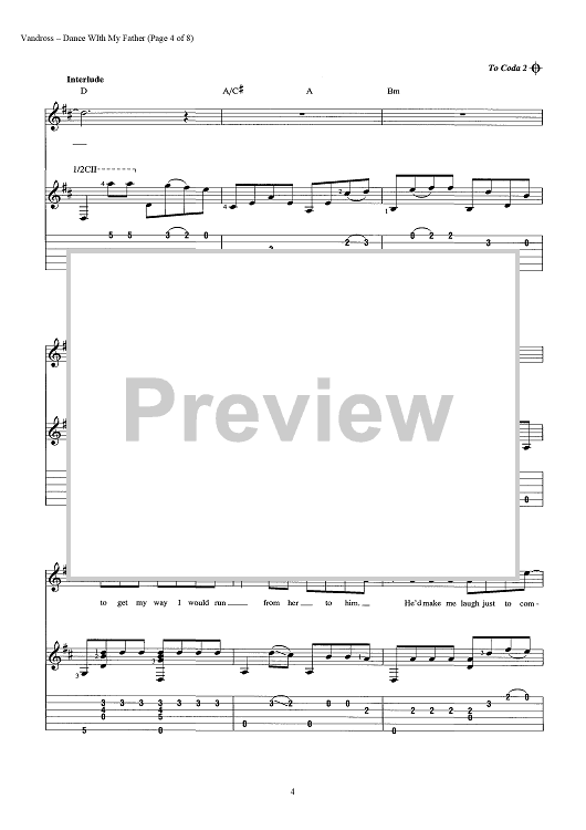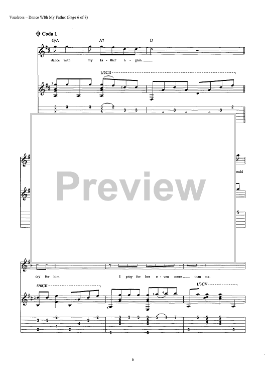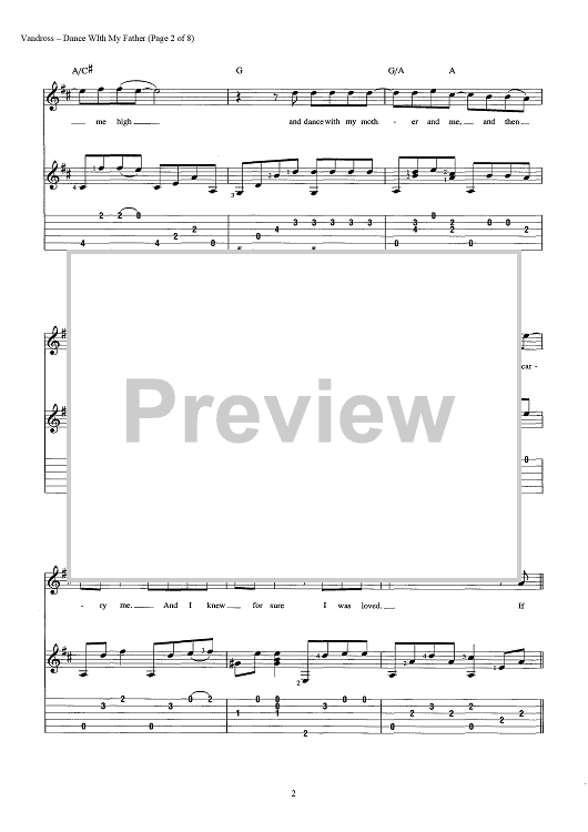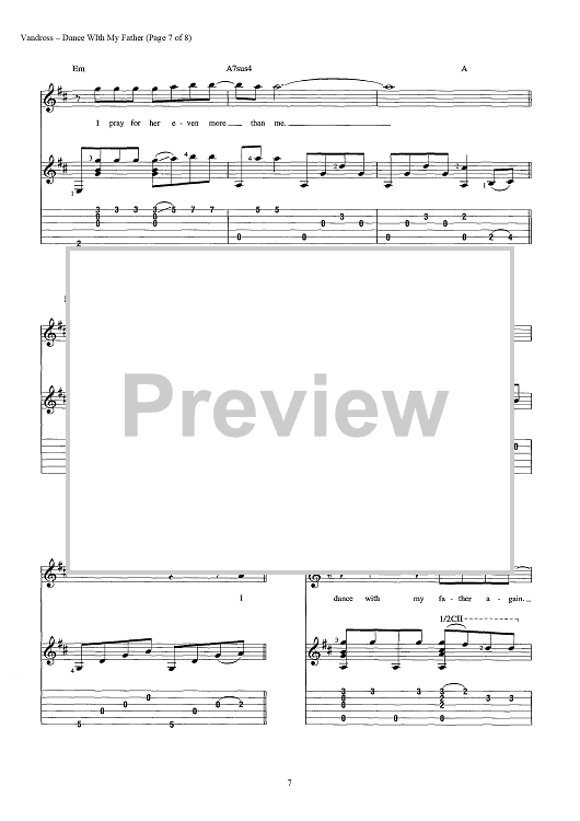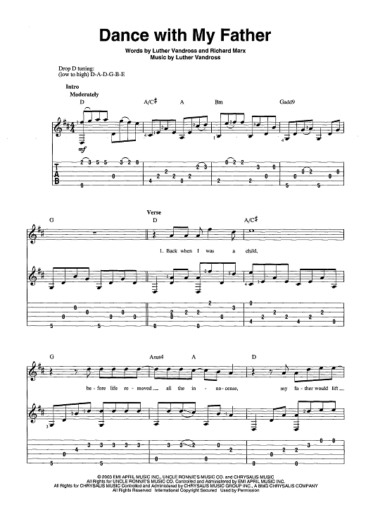Digital Sheet Music for Dance With My Father by Richard Marx, Luther Vandross scored for Guitar Tab/Vocal/Chords; id:442888