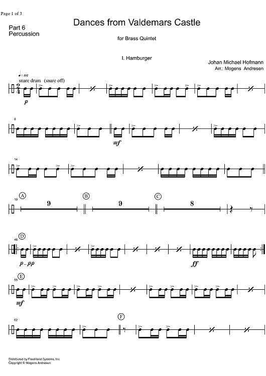 Digital Sheet Music for Dances from Valdemars Castle - Percussion by Mogens Andresen, Johan Michael Hofmann scored for Brass Quintet; id:328106
