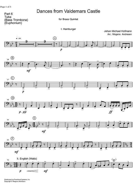 "Dances from Valdemars Castle - Tuba" Sheet Music by Johan Michael Hofmann