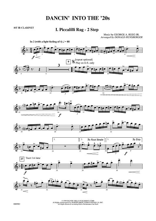 Digital Sheet Music for Dancin' Into The '20s: I. Piccalilli Rag / 2 Step - Clarinet 1 by Donald Hunsberger, George A. Reeg, Jr. scored for Concert Band; id:310845