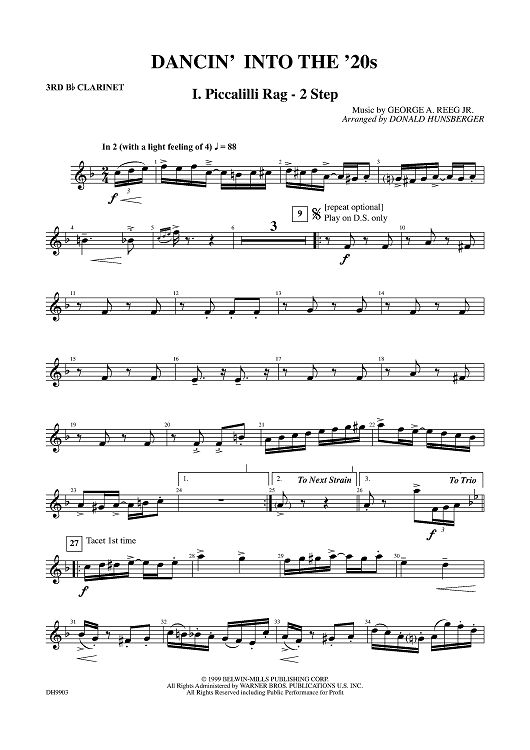 Digital Sheet Music for Dancin' Into The '20s: I. Piccalilli Rag / 2 Step - Clarinet 3 by Donald Hunsberger, George A. Reeg, Jr. scored for Concert Band; id:310847