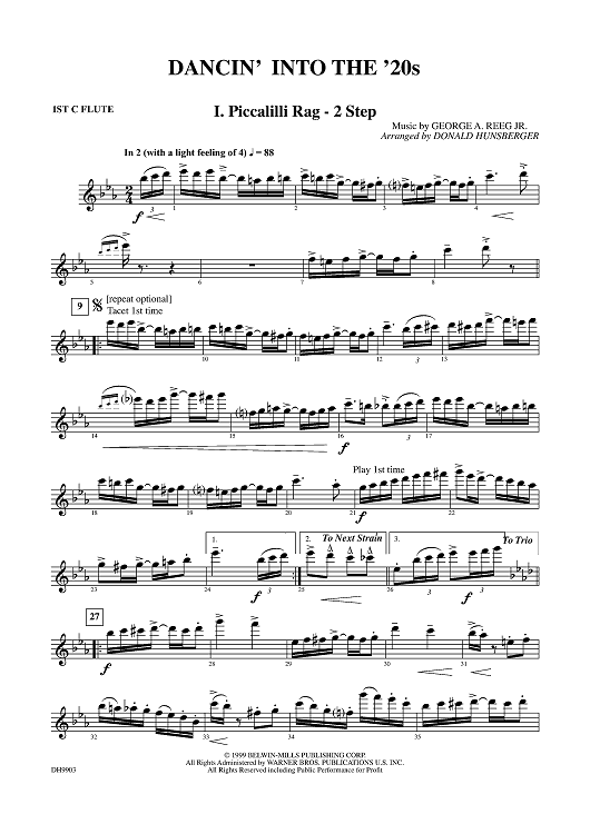 Digital Sheet Music for Dancin' Into The '20s: I. Piccalilli Rag / 2 Step - Flute 1 by Donald Hunsberger, George A. Reeg, Jr. scored for Concert Band; id:310837