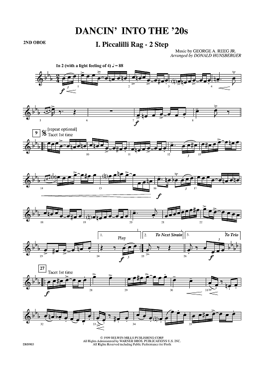 Digital Sheet Music for Dancin' Into The '20s: I. Piccalilli Rag / 2 Step - Oboe 2 by Donald Hunsberger, George A. Reeg, Jr. scored for Concert Band; id:310840