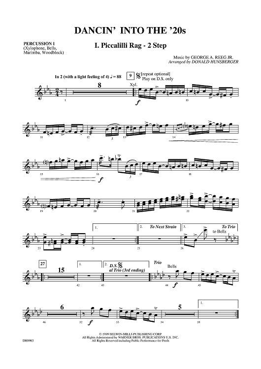 Digital Sheet Music for Dancin' Into The '20s: I. Piccalilli Rag / 2 Step - Percussion 1 by Donald Hunsberger, George A. Reeg, Jr. scored for Concert Band; id:310868