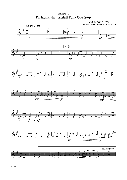 Digital Sheet Music for Dancin' Into The '20s: IV. Hunkatin - A Half Tone One-Step - Horn 3 by Donald Hunsberger, Sol P. Levy scored for Concert Band; id:310976