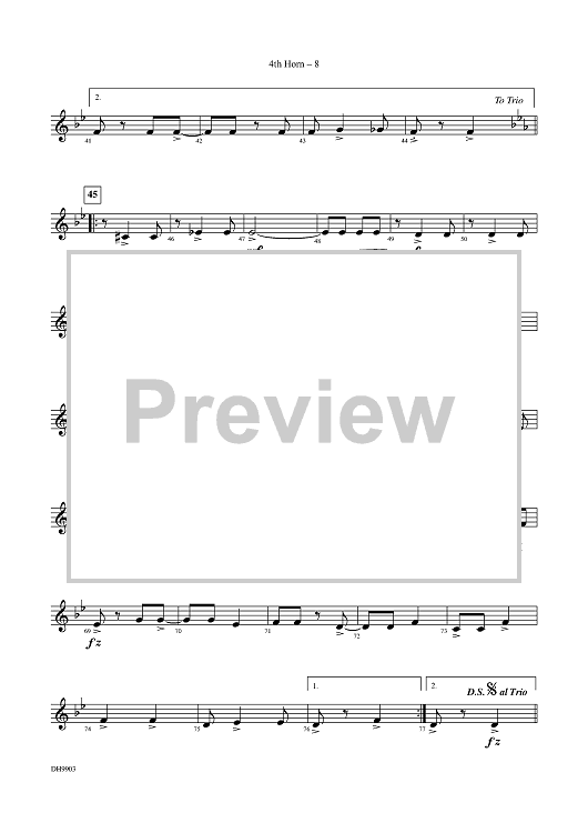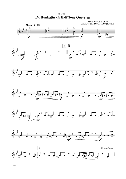 Digital Sheet Music for Dancin' Into The '20s: IV. Hunkatin - A Half Tone One-Step - Horn 4 by Donald Hunsberger, Sol P. Levy scored for Concert Band; id:310977