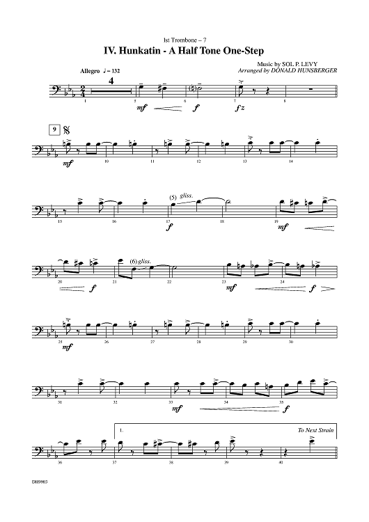Digital Sheet Music for Dancin' Into The '20s: IV. Hunkatin - A Half Tone One-Step - Trombone 1 by Donald Hunsberger, Sol P. Levy scored for Concert Band; id:310981