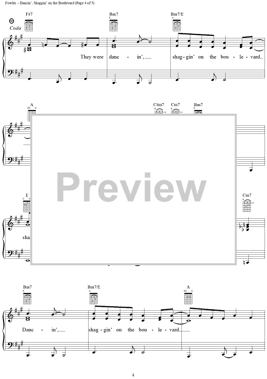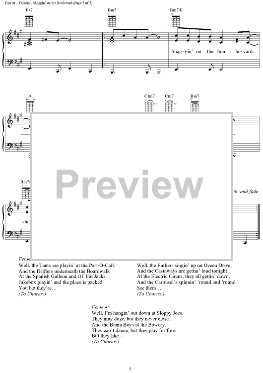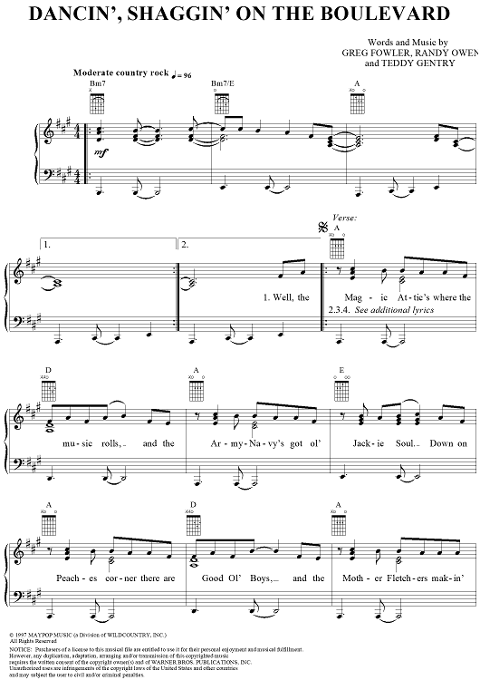 Digital Sheet Music for Dancin', Shaggin' On The Boulevard by Greg Fowler, Randy Owen, Teddy Gentry, Alabama scored for Piano/Vocal/Chords; id:112020
