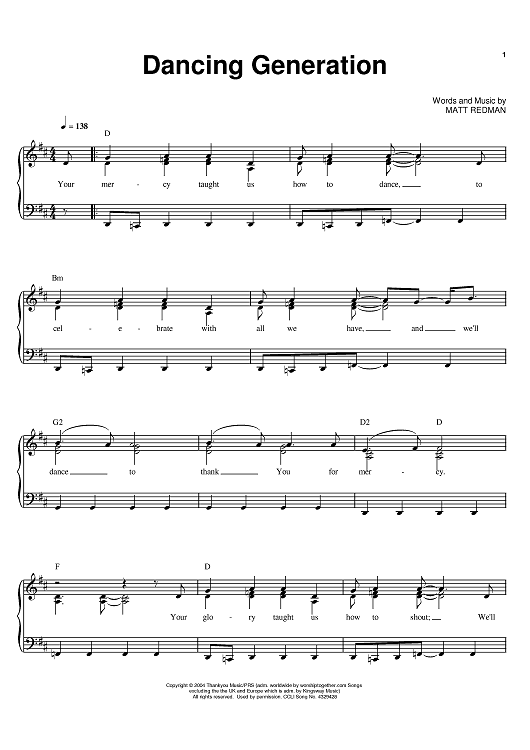 Digital Sheet Music for Dancing Generation by Matt Redman scored for Piano/Vocal/Chords; id:393814