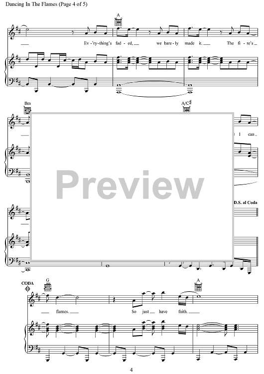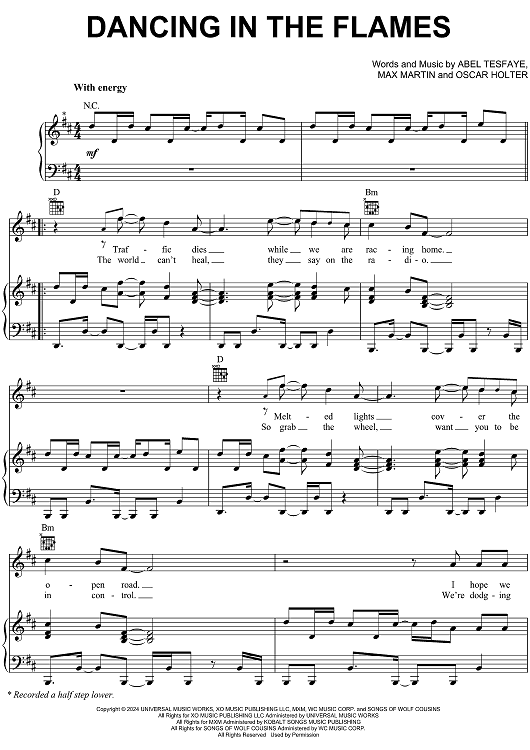 Digital Sheet Music for Dancing In The Flames by Max Martin, Abel Tesfaye, Oscar Holter, The Weeknd scored for Piano/Vocal/Chords; id:504797