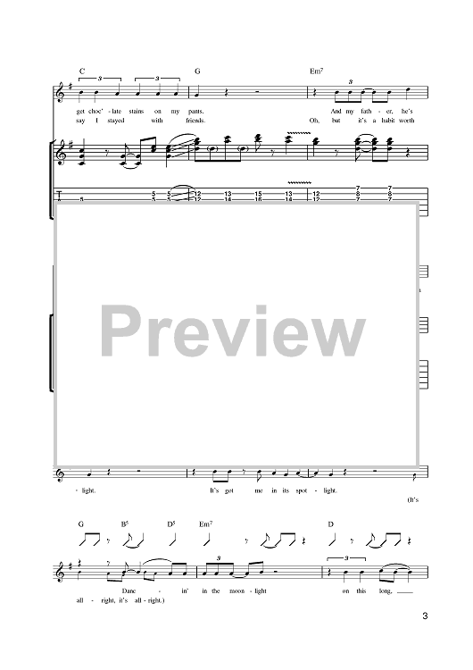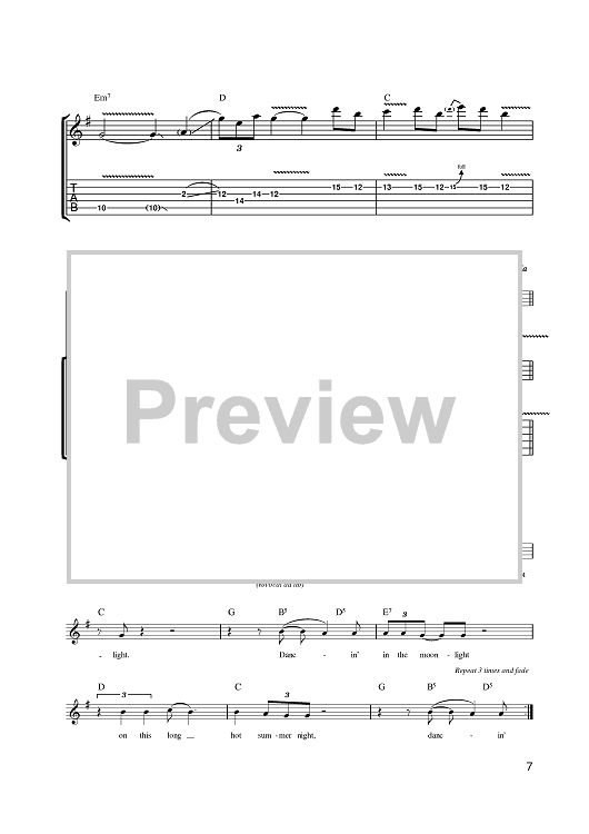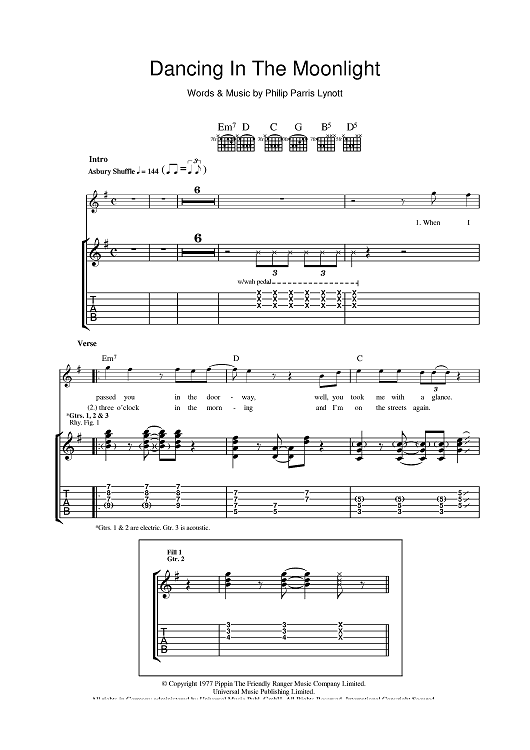 Digital Sheet Music for Dancing In The Moonlight by Thin Lizzy, Phil Lynott scored for Guitar Tab; id:398719