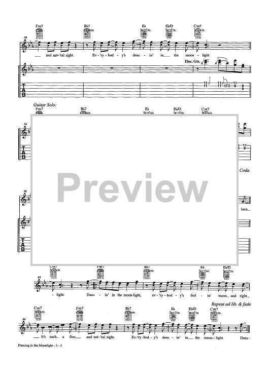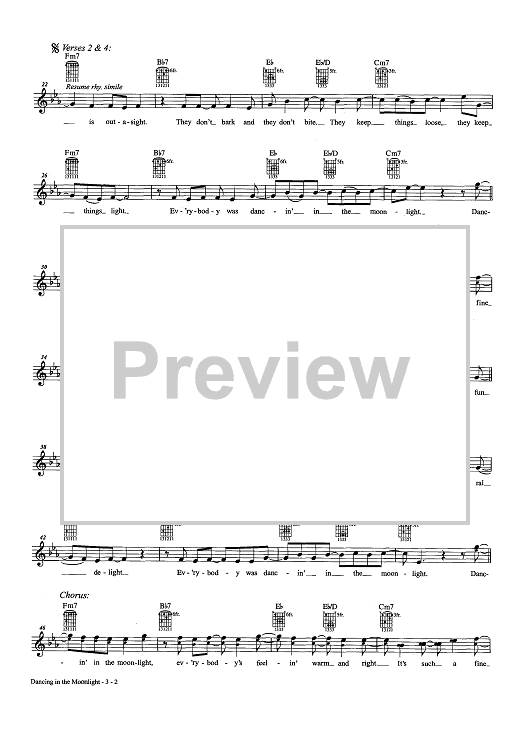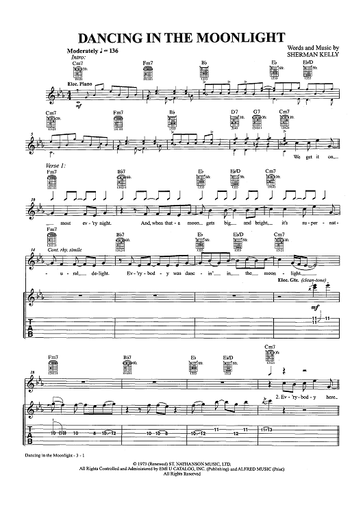 Digital Sheet Music for Dancing in the Moonlight by Sherman Kelly scored for Easy Guitar Tab/Vocal/Chords; id:457174