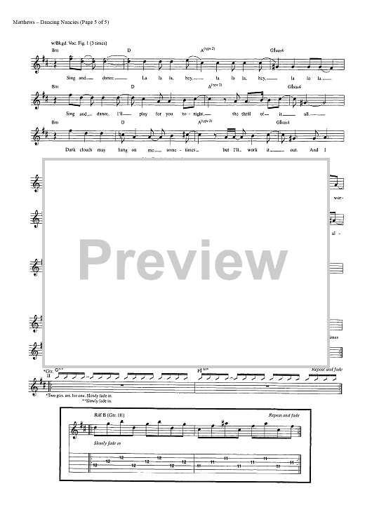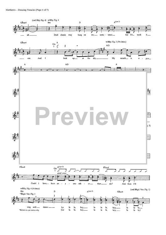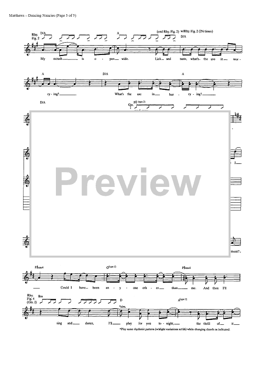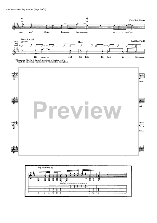 Digital Sheet Music for Dancing Nancies by Dave Matthews Band, Dave Matthews scored for Guitar Tab/Vocal; id:448229