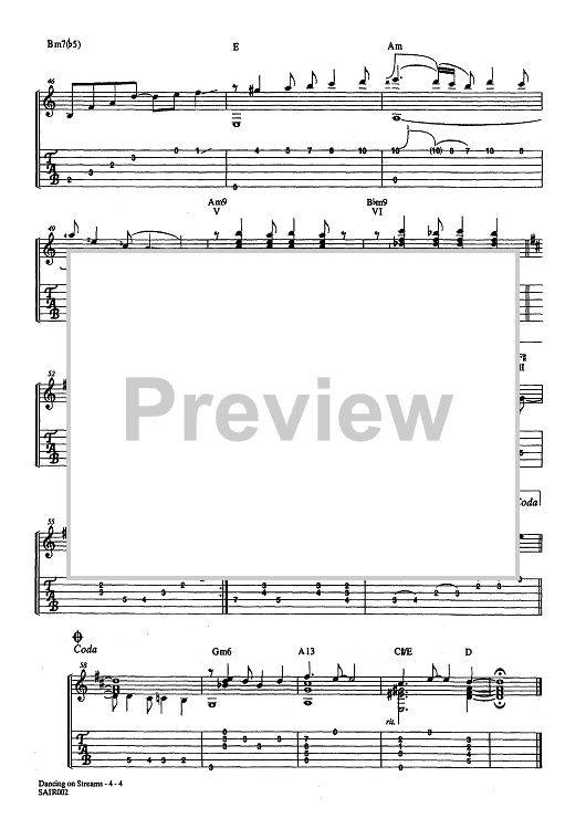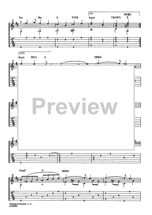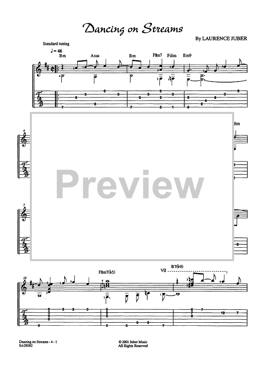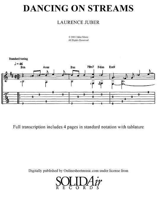 Digital Sheet Music for Dancing on Streams (No MP3) by , Laurence Juber scored for Guitar Tab; id:452822