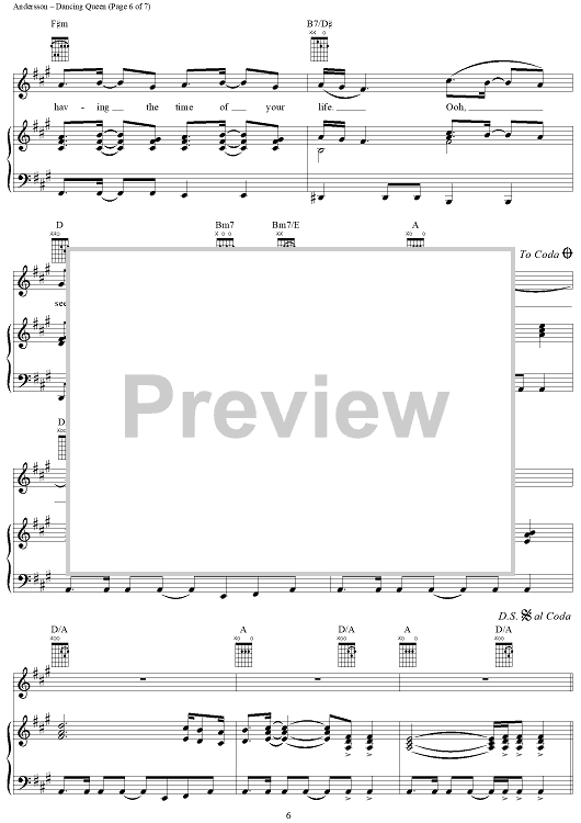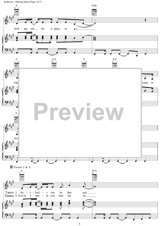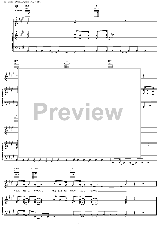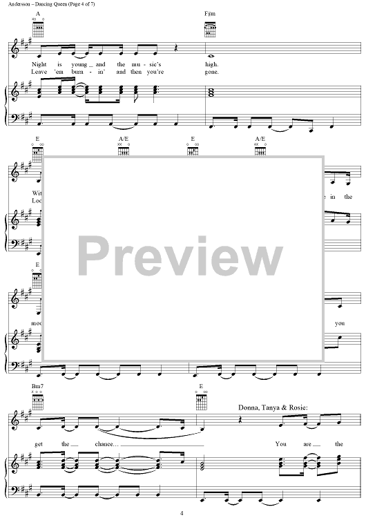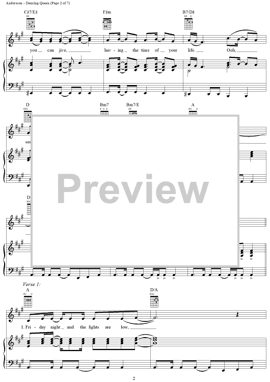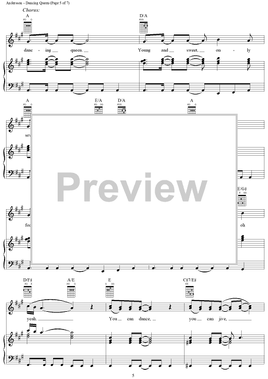 Digital Sheet Music for Dancing Queen by ABBA, Benny Andersson, Bjorn Ulvaeus, Stig Anderson scored for Piano/Vocal/Chords; id:314968
