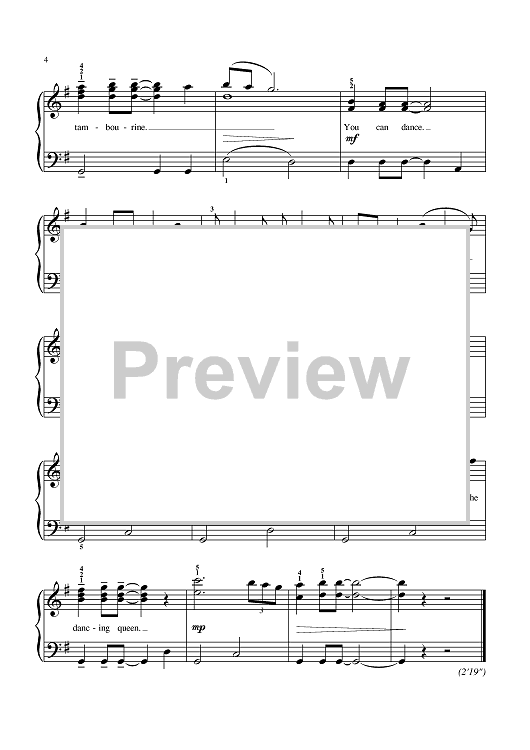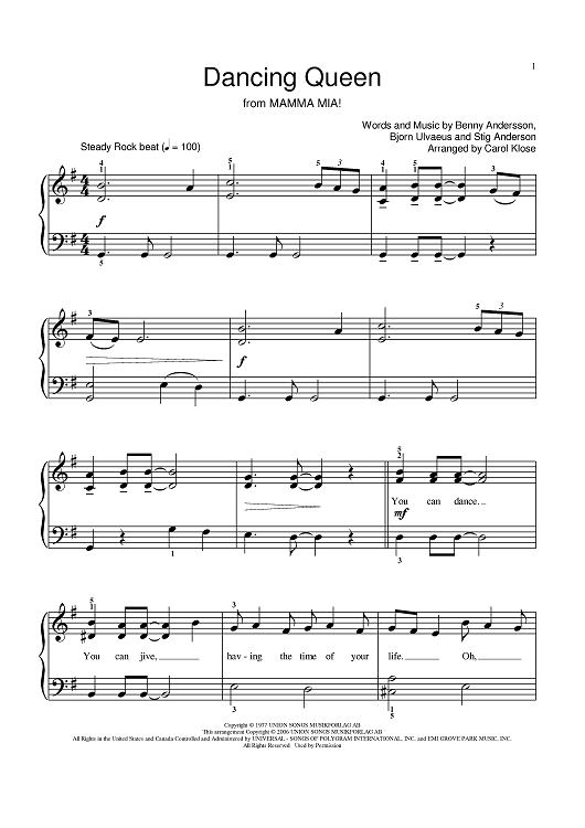 Digital Sheet Music for Dancing Queen by ABBA, Benny Andersson, Bjorn Ulvaeus, Stig Anderson, Carol Klose scored for Piano; id:389039